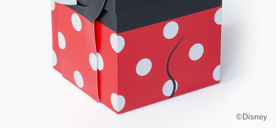 ミニーマウスをイメージしたパッケージは水玉模様のスカートと大きなリボンをデザインしています。