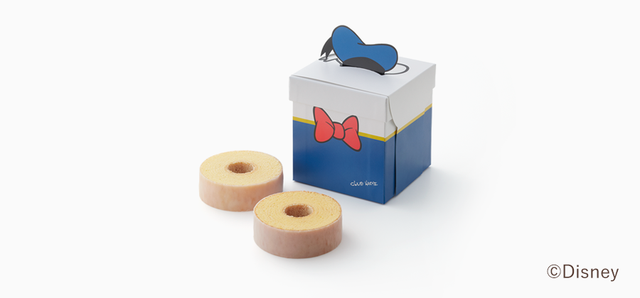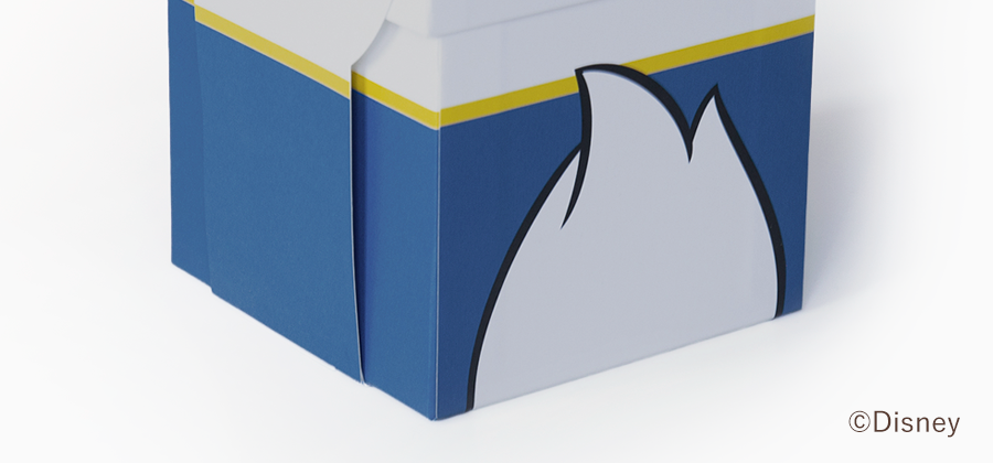ドナルドダックをイメージしたパッケージは赤いリボンのついたセーラー服とふわふわのおしりをデザインしています。